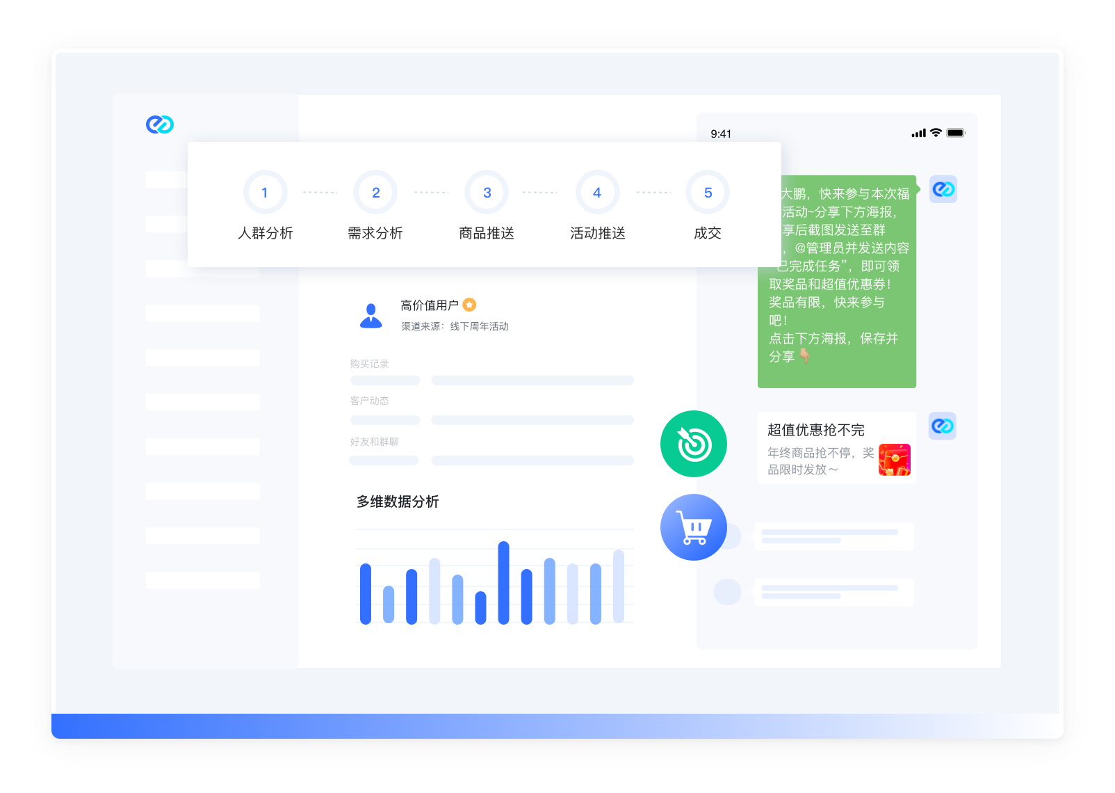 依托大数据,实现精准客户分层运营,智能推送、降低私域运营门槛,小白也能轻松实现私域精细化运营